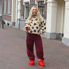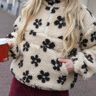 Deze heerlijk zachte en speelse Teddy Fleece Trui is de perfecte trui om je warm en vrolijk te houden. De trui is gemaakt van een zachte, bruine teddy fleece stof en is voorzien van een opvallend, all-over patroon van bloemen. De hoge kraag met korte ritssluiting, de comfortabele buidelzak aan de voorkant en de elastische boord aan de onderkant geven deze trui een casual en behaaglijke look.