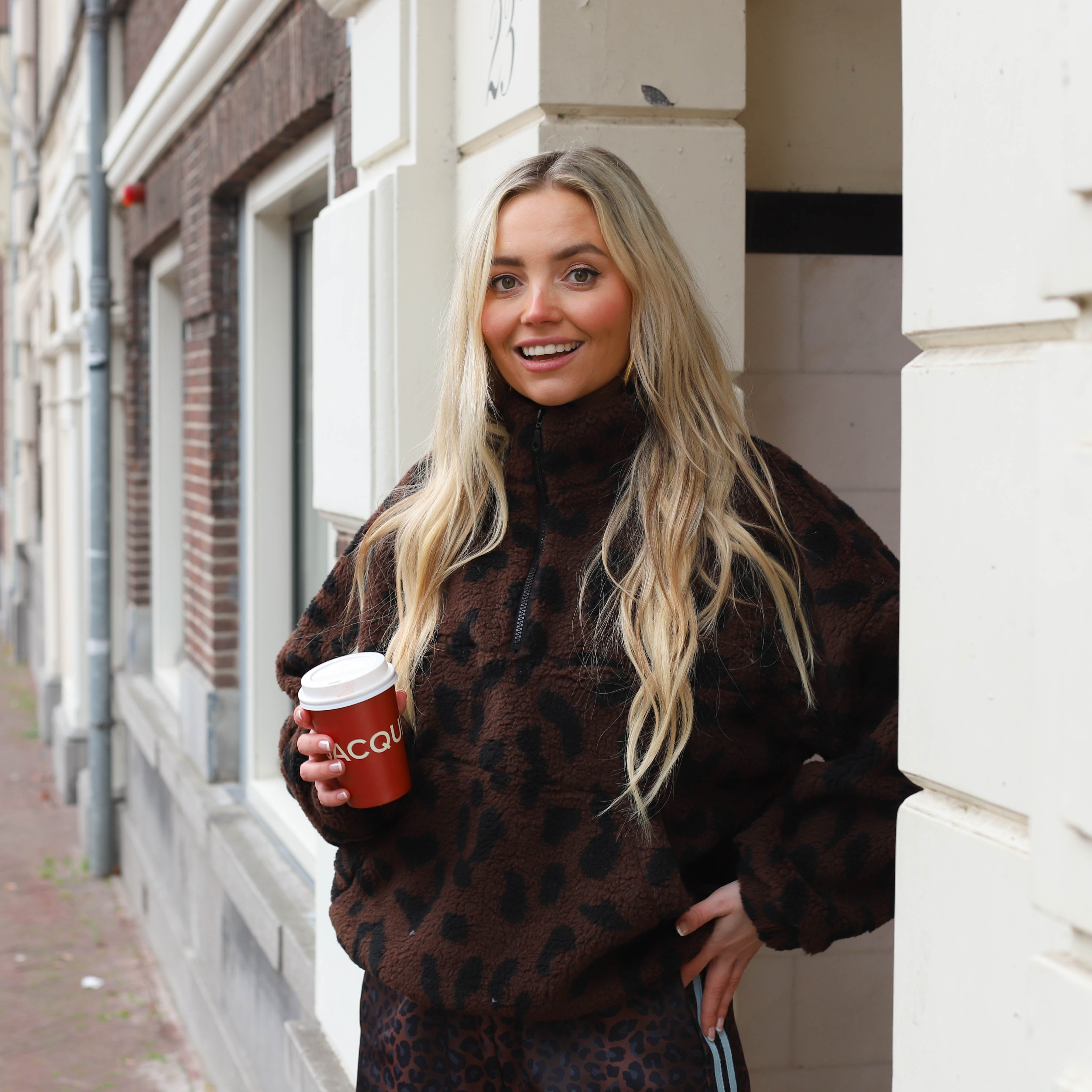 Deze Teddy Pullover is een stoere en heerlijk warme toevoeging aan je casual collectie. De trui is gemaakt van een zachte, krullende teddy-stof en is voorzien van een gedurfd leopard patroon.