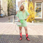Deze "wafel setje mint" is een comfortabele en stijlvolle set voor in je garderobe. De set bestaat uit een top en shorts met een lichtgroene kleur en geweven textuur. Deze set is perfect voor een casual en relaxte look. Combineer de top en shorts met elkaar voor een complete outfit!