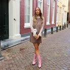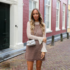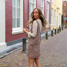 Ga voor een casual en toch stijlvolle look met deze 'denim jurk' in een bruine kleur. De jurk heeft een klassieke A-lijn pasvorm en is veelzijdig te combineren met laarsjes en een tas.