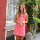 Ga voor een casual en toch stijlvolle look met deze 'denim jurk' in een koraalroze kleur. De jurk heeft een klassieke A-lijn pasvorm en is veelzijdig te combineren met leuke laarsjes.