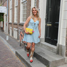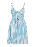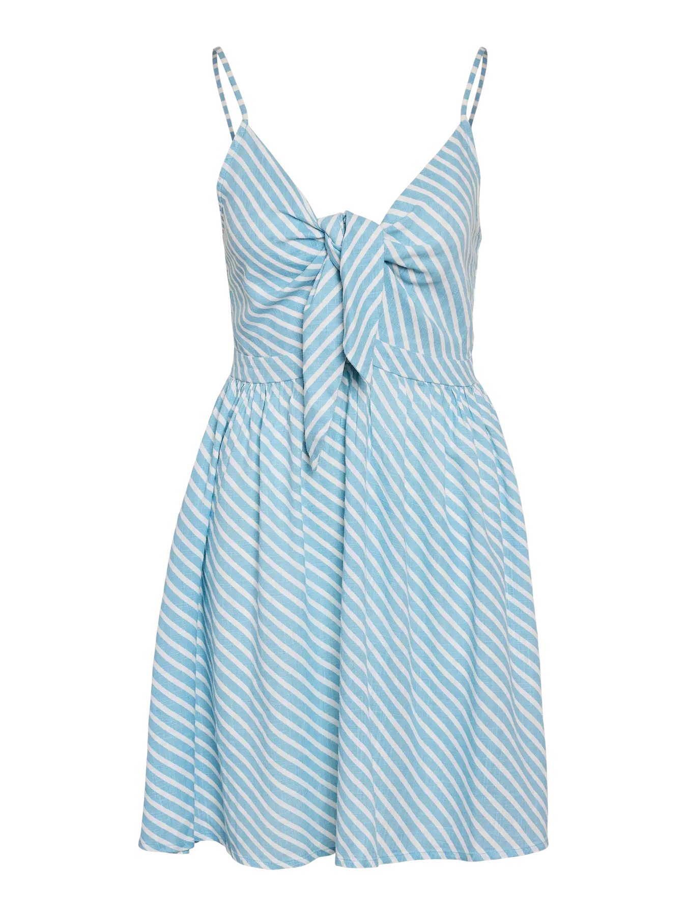 Deze vrolijke, gestreepte short dress in lichtblauw en wit is perfect voor de zonnige dagen! De fijne mix van viscose en linnen zorgt voor een luchtig en comfortabel gevoel. De smalle bandjes en de relaxte pasvorm maken dit jurkje ideaal voor een casual look. Combineer het met sandalen of sneakers voor een zomerse outfit.