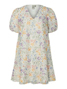 Deze charmante Leanna jurk van YAS is een must-have voor de lente en zomer. De jurk heeft een prachtige all-over bloemenprint in zachte pastelkleuren. De V-hals en de korte pofmouwen geven de jurk een vrouwelijke en speelse uitstraling. Perfect voor een zonnige dag of een gezellige gelegenheid!