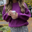 Deze Rody Trui is de ultieme cozy essential met een moderne twist. De trui is grof gebreid in een rijke paarse melange en heeft een heerlijk zachte, fluffy textuur. De wijde, gepofte mouwen en de cropped lengte geven de trui een trendy, oversized silhouet. De ronde hals en de relaxte pasvorm zorgen voor maximaal comfort.