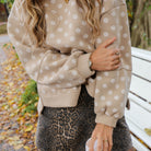 Deze Ruby Sweater is een heerlijke, zachte trui met een speelse, retro uitstraling. De sweater is uitgevoerd in een neutrale beige kleur en bedekt met een all-over wit stippenpatroon. De oversized pasvorm, de ronde hals en de comfortabele, zachte stof maken dit de perfecte trui voor casual dagen. De subtiel gebogen, onafgewerkte zoom en de raglanmouwen geven het item een nonchalante vibe.