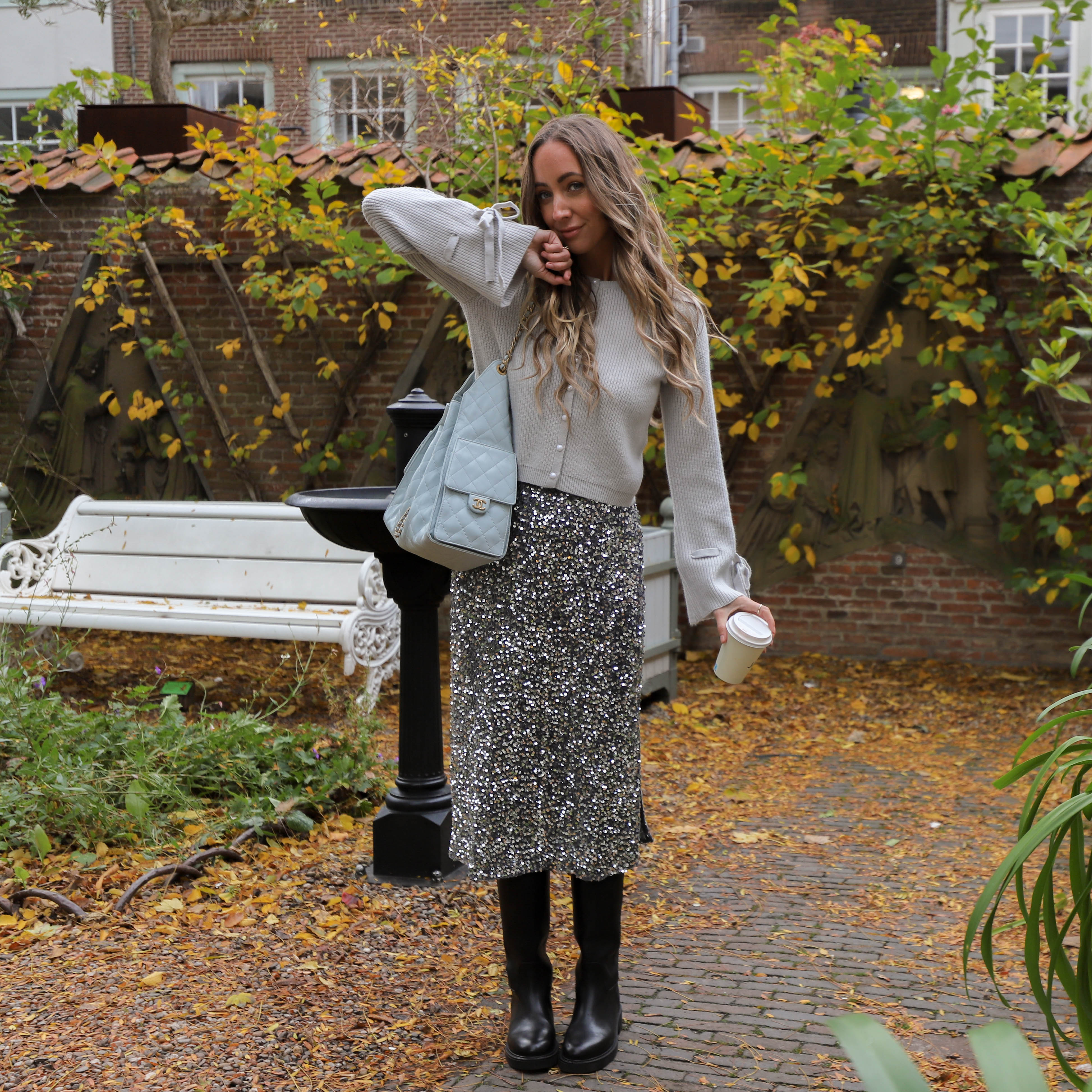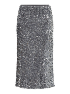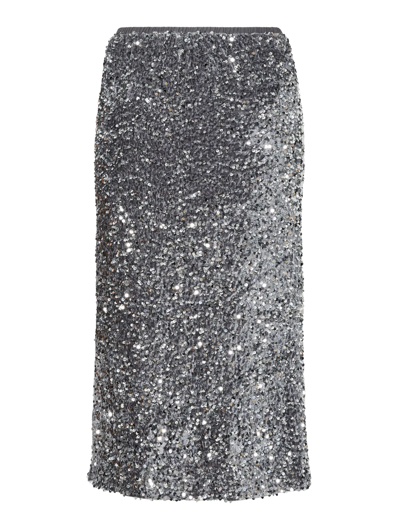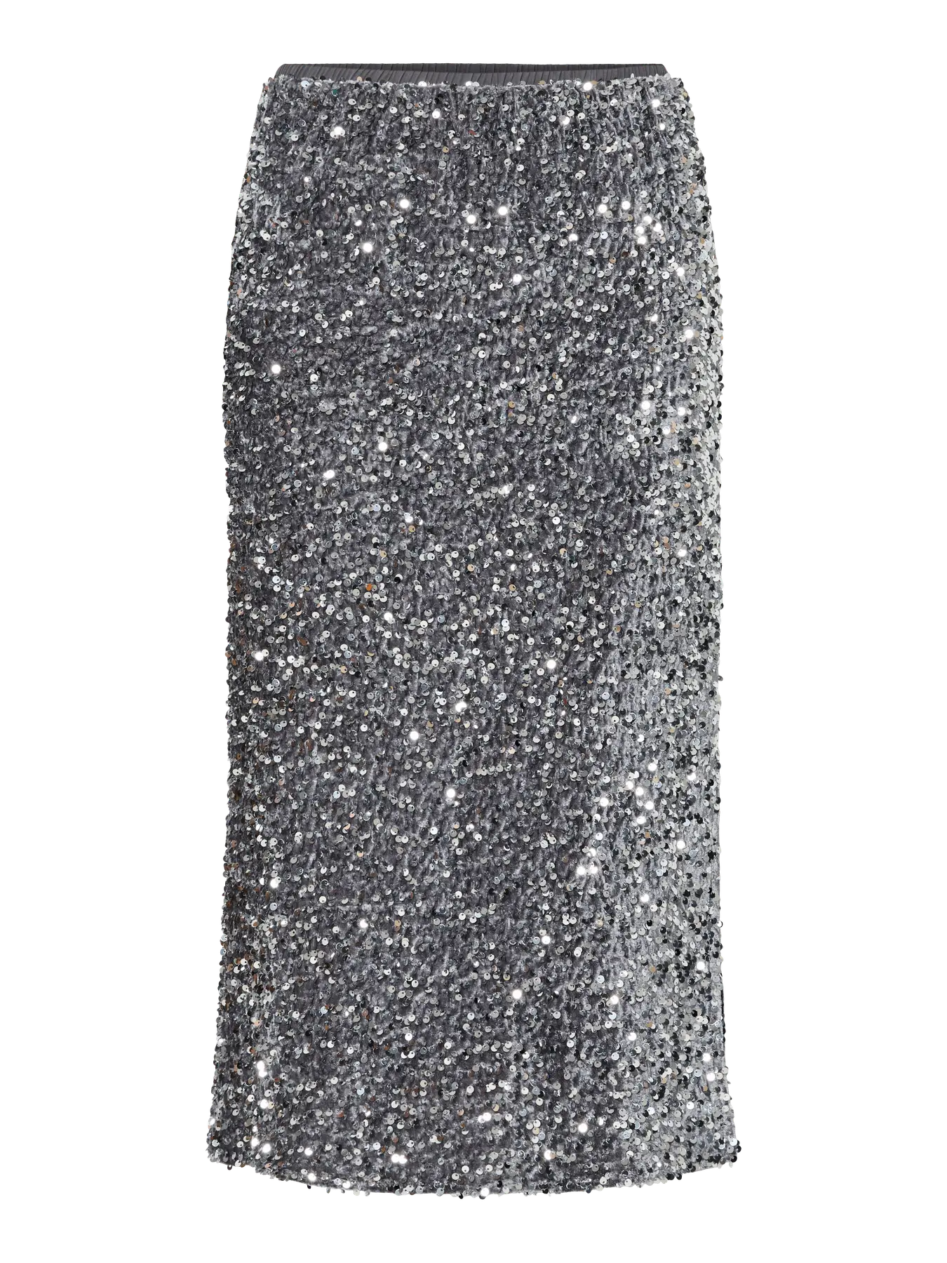 Deze YASvalera HW Long Skirt is de ultieme statement rok voor feestjes en glam gelegenheden. De rok is van een glanzende, zilverkleurige stof en is volledig bedekt met duizenden kleine zilveren pailletten, wat zorgt voor een spectaculair sprankelend effect. Het heeft een elegante high-waist pasvorm en valt recht, wat een slank en chic silhouet creëert.