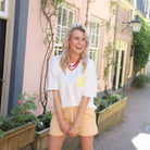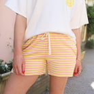 Dit vrolijke Billie Streep Short in geel en roze is perfect voor een zomerse dag! De comfortabele pasvorm met elastische tailleband en het gestreepte design zorgen voor een casual en speelse look. Makkelijk te combineren met je favoriete tops!