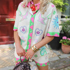 Deze shorts zijn een absolute blikvanger dankzij het all-over geprinte patroon dat een speels en artistiek element toevoegt aan je outfit. Vervaardigd uit een ademende viscose stof, bieden ze optimaal comfort op warmere dagen. De losse pasvorm, gecombineerd met een elastische tailleband en handige steekzakken aan de zijkant, maakt deze shorts zowel stijlvol als praktisch.