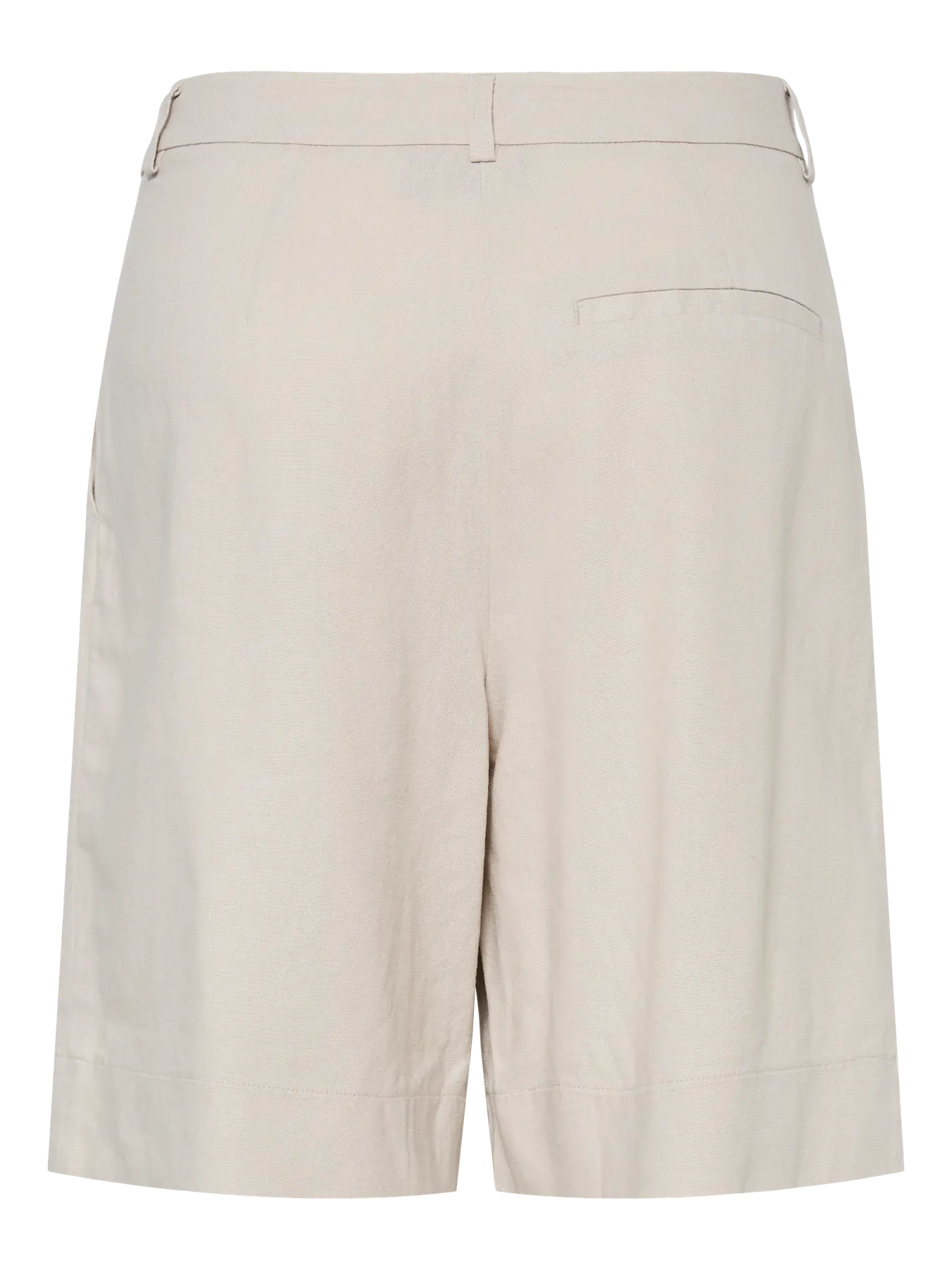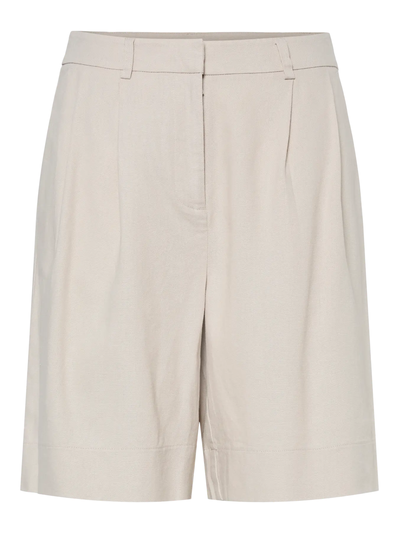Deze stijlvolle, beige bermuda shorts met een high-waist model zijn een elegante toevoeging aan je garderobe. De mix van linnen, viscose, polyester en een vleugje katoen zorgt voor een comfortabele en soepele stof. De plooien aan de voorkant geven de shorts een geklede uitstraling. Perfect om te combineren met een blouse, een strakke top of een blazer voor een sophisticated look!