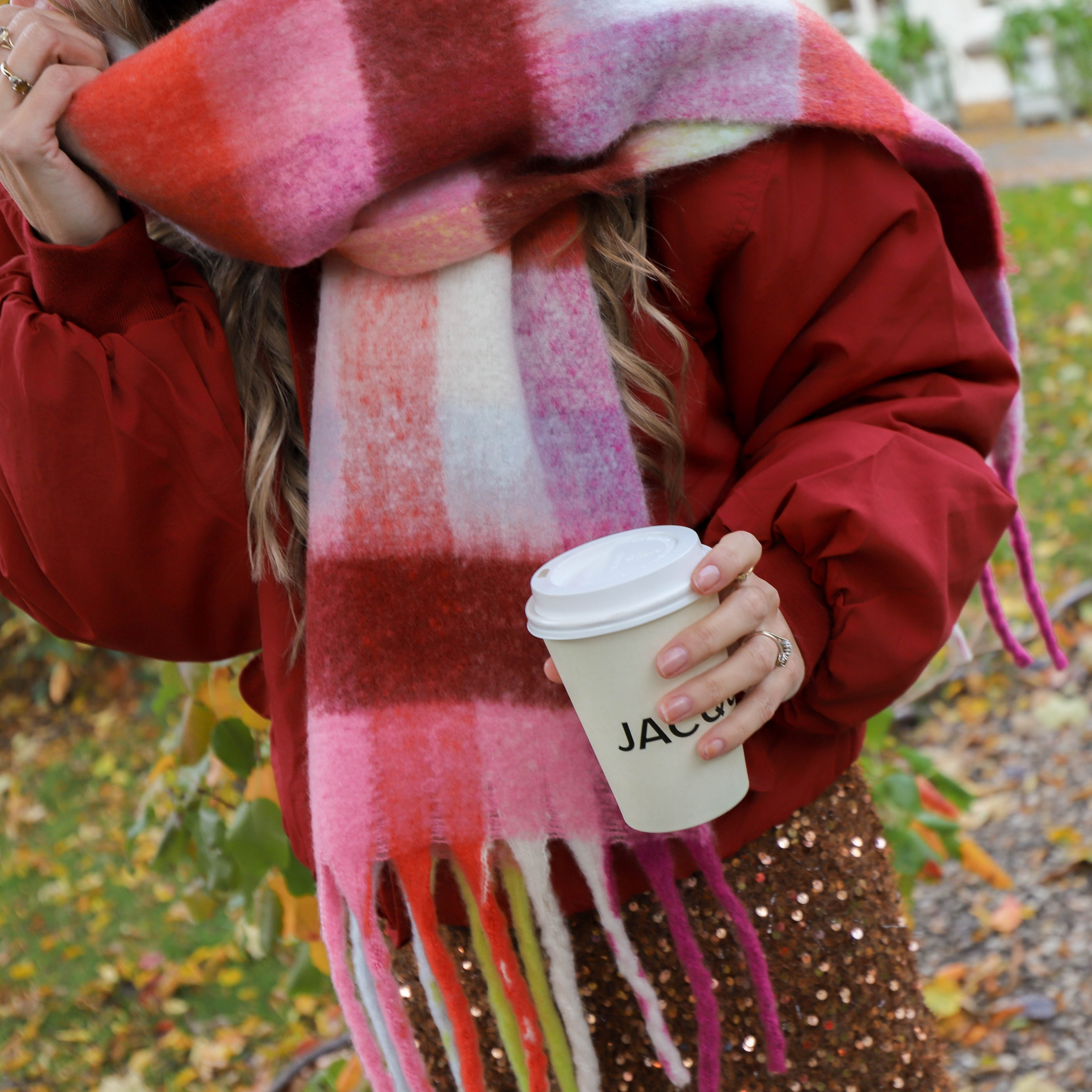 Deze pc Jikka Long Scarf is een heerlijk zachte, lange sjaal die perfect is om je warm te houden en je outfit kleur te geven. De sjaal is uitgevoerd in een grof ruitpatroon met een vrolijke en warme kleurencombinatie van oranje, roze, bordeauxrood, lichtblauw en geel. De pluizige, brushed textuur en de franjes aan de onderkant geven de sjaal een behaaglijke en trendy vibe.