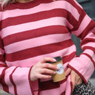 Deze Flore Streep Trui is een zachte en opvallende trui die je casual look direct kleur geeft. De trui heeft een klassiek horizontaal streepdessin in een levendige combinatie van roze en bordeauxrood. De fijne knit, de ronde hals en de comfortabele, oversized pasvorm zorgen ervoor dat dit een heerlijke trui is om te dragen. Style 'm met een donkere jeans of een leren broek om de felle kleuren eruit te laten springen.