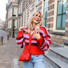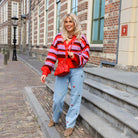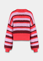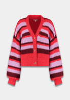 De NOOR cardigan in STRIPE MULTI LILA LOVE is een gebreid vest met verticale kleurbanen in paars, roze en ecru. De zachte wolmix, open voorkant en relaxed fit maken dit vest perfect voor laagjes. Draag over een basic tee of over een jurk voor extra warmte kleur.