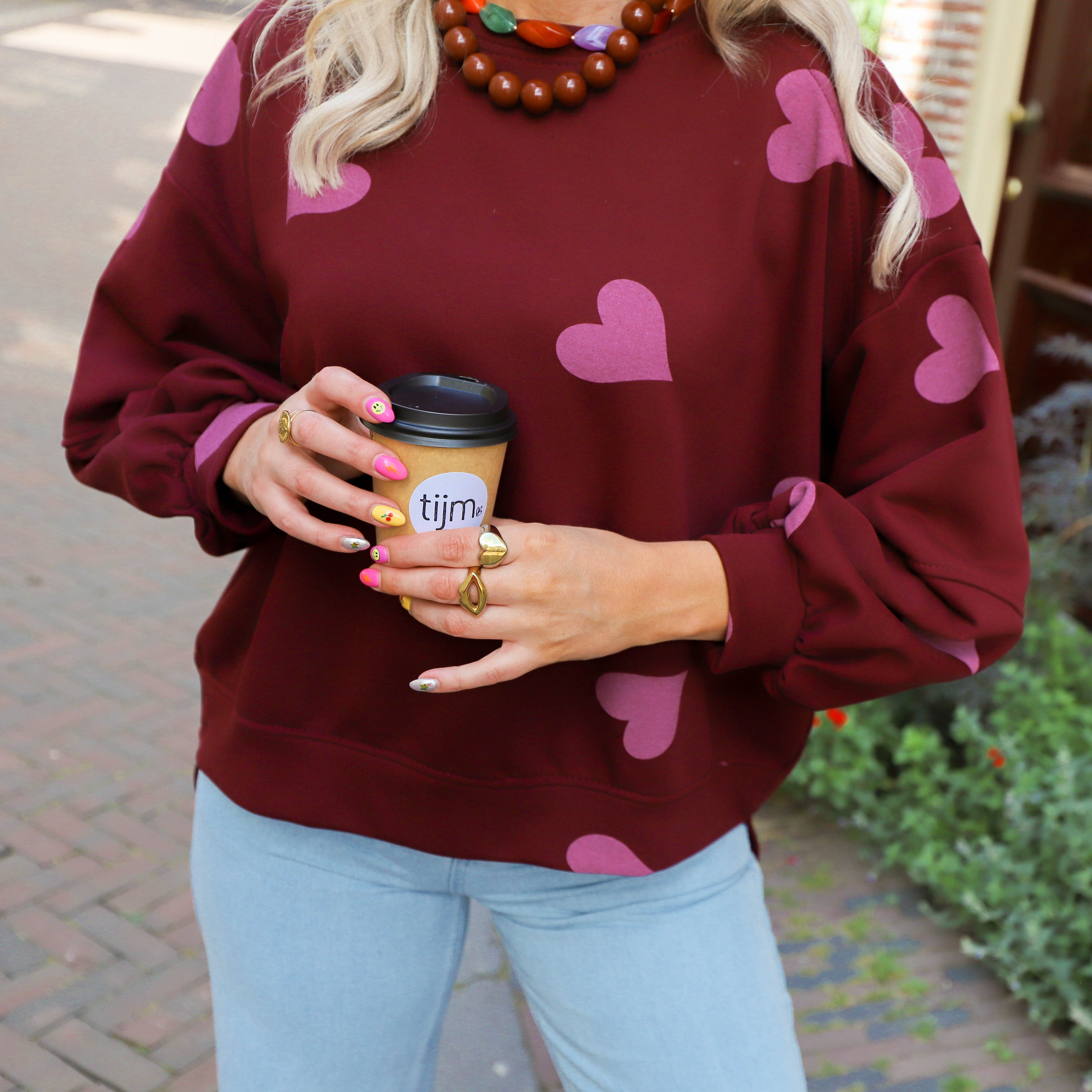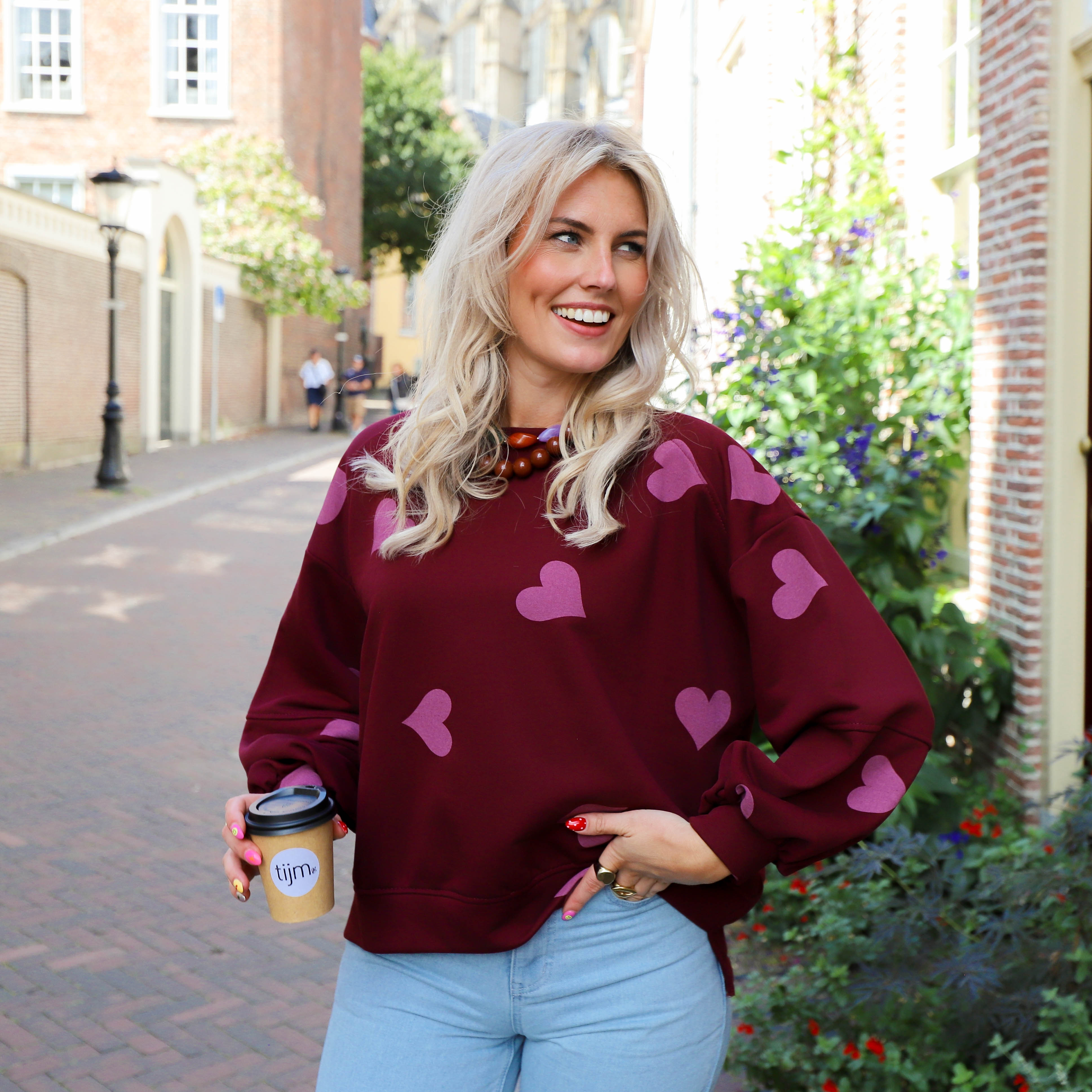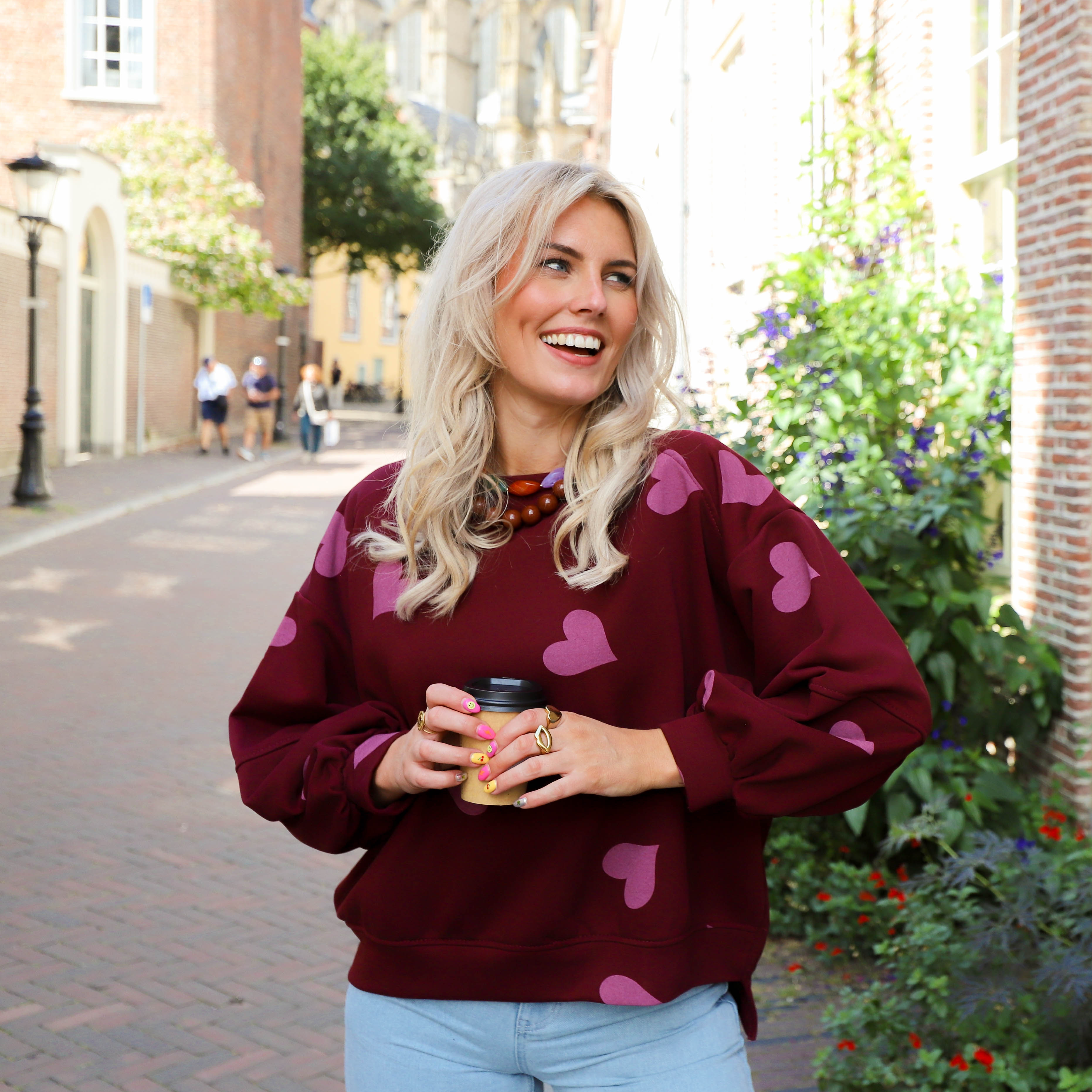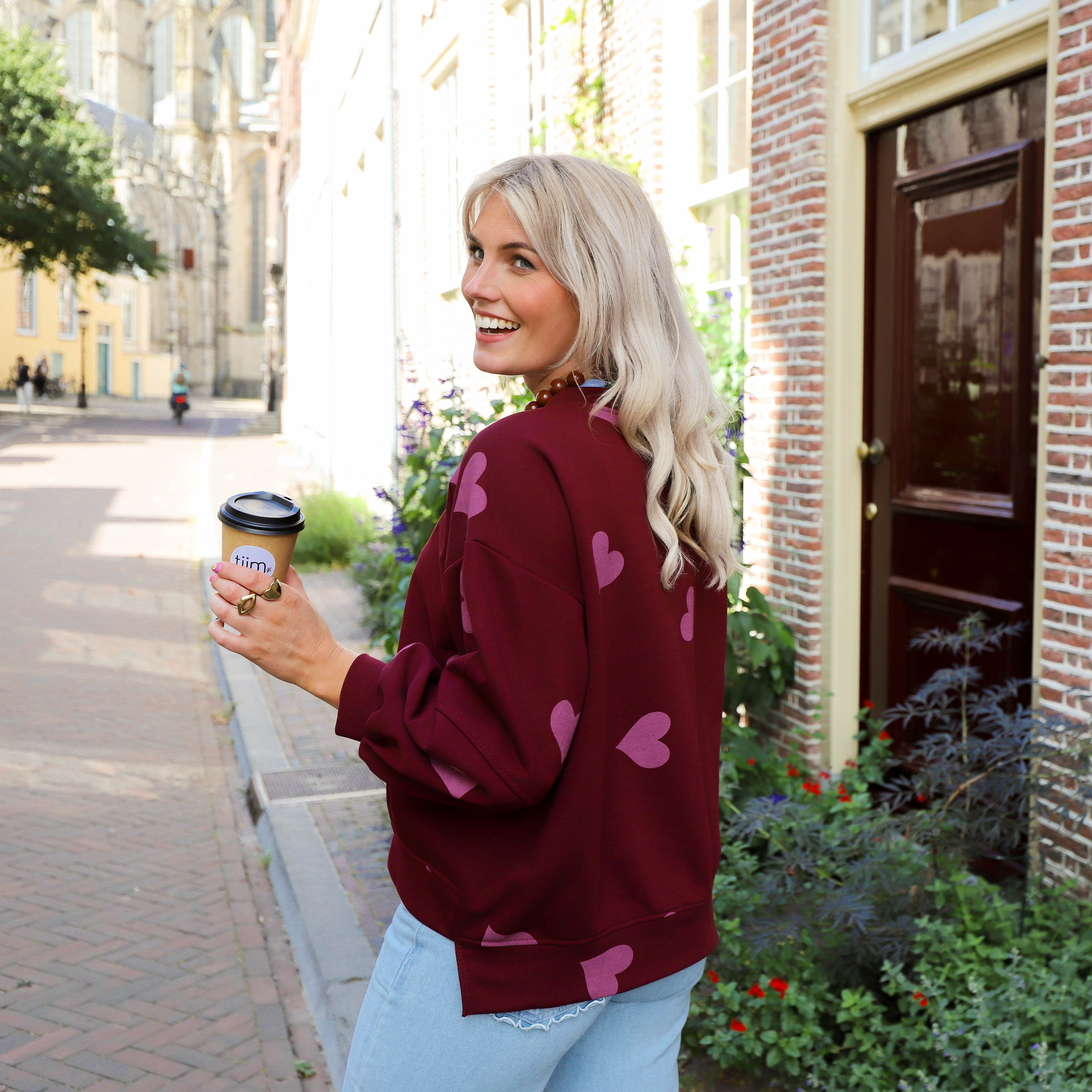 Deze sweater heeft een klassieke pasvorm en is verfraaid met speelse, lichtroze hartjes die een romantische touch geven. De ronde halslijn en ribgebreide boorden aan de mouwen en onderkant zorgen voor een perfecte pasvorm.