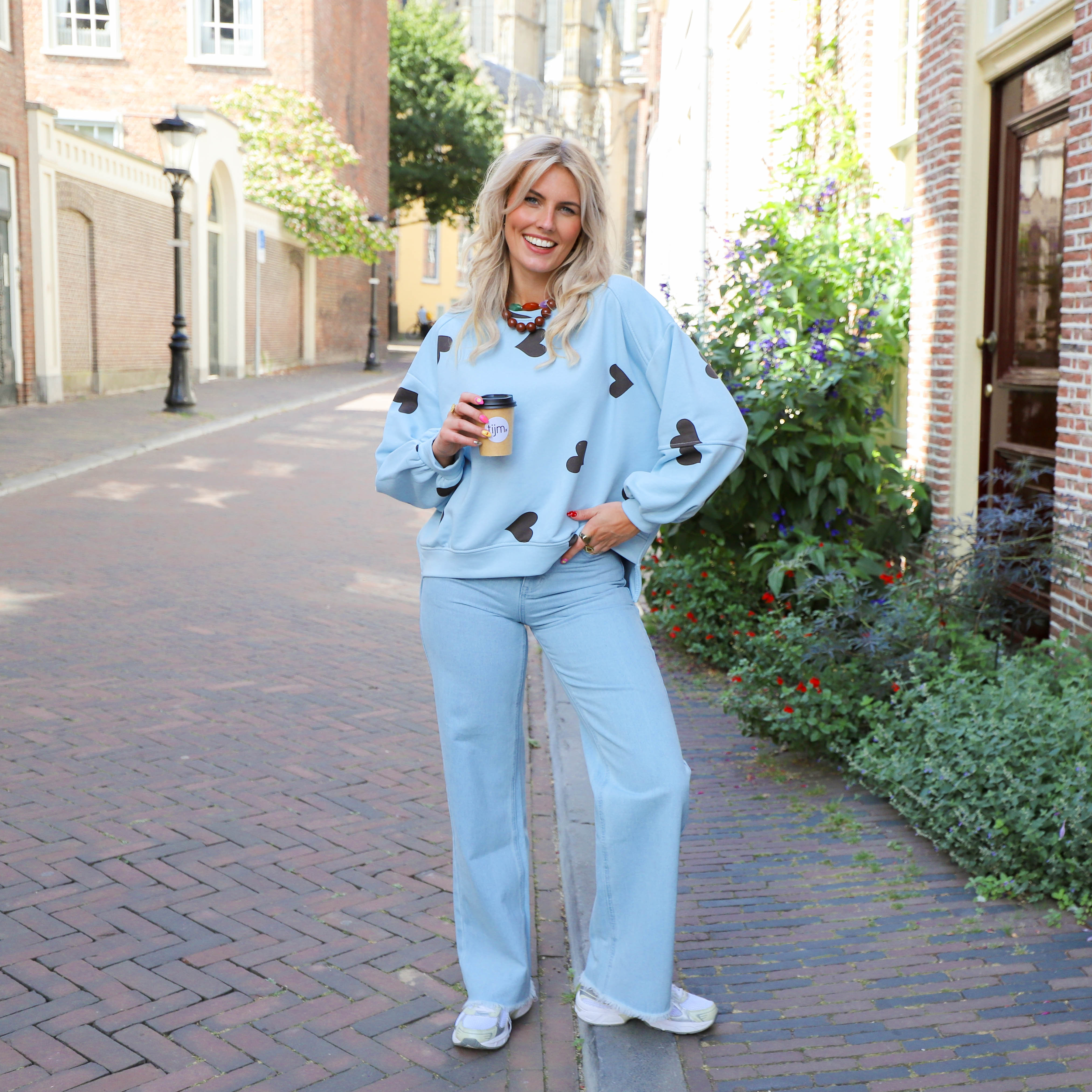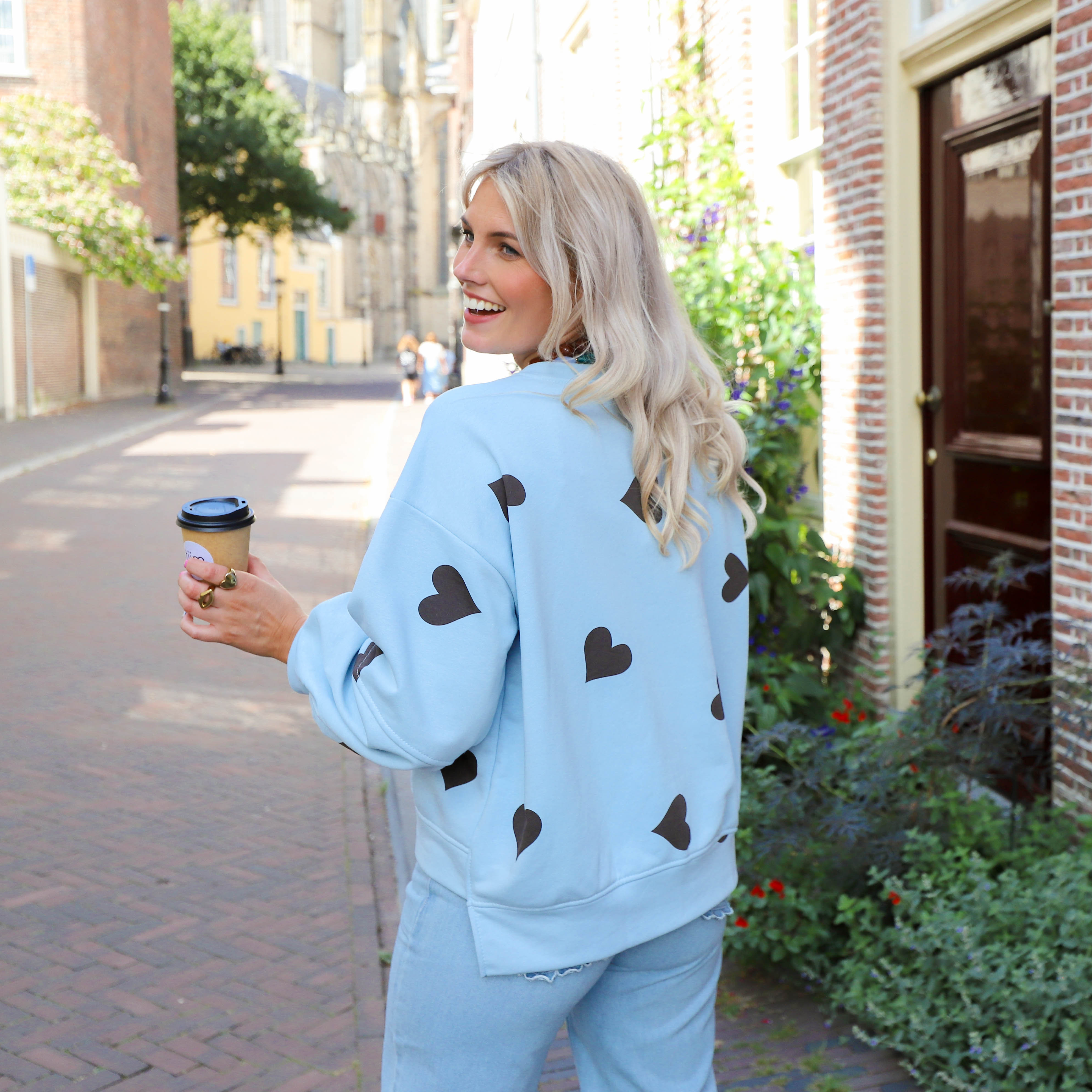 Hartjes sweater blauw bruin