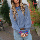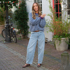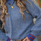 Deze zachte, blauwe trui is de perfecte, warme toevoeging voor de koudere dagen. De trui heeft een prachtige, diepe, rood-bruine kleur en een klassieke ronde hals. Het materiaal heeft een heerlijk zachte, pluizige textuur, wat zorgt voor optimaal draagcomfort. Dankzij de wijde, boxy fit valt deze trui lekker losjes, wat zorgt voor een nonchalante en modieuze cropped look.