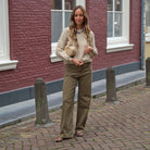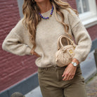Deze zachte, bordeauxrode trui is de perfecte, warme toevoeging voor de koudere dagen. De trui heeft een licht beige melange kleur en een klassieke ronde hals. Het materiaal heeft een heerlijk zachte, pluizige textuur. Dankzij de wijde, boxy fit valt deze trui lekker losjes, wat zorgt voor een nonchalante en modieuze cropped look.