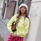 De Patch Sweater geel is een moderne en speelse toevoeging aan je garderobe. Het klassieke crewneck design met een subtiele patch op de borst geeft het item een unieke, eigentijdse uitstraling. Deze sweater is ideaal voor een casual outfit en voegt moeiteloos karakter en een frisse kleur toe aan iedere look. Perfect voor wie houdt van fashion-forward items die zowel comfortabel als opvallend zijn.