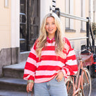 Deze Streep Sweater Life is een absolute favoriet voor een ontspannen en trendy look. De trui kenmerkt zich door een breed streeppatroon en een unieke patch op de mouw met de tekst "Be The Reason for Smiles today'. Dankzij de extreem baggy fit met verlaagde schouders en brede mouwen creëer je in een handomdraai een modern en nonchalant silhouette.