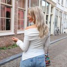Voeg een vleugje romantiek toe aan je garderobe met deze leuke top. Deze off-shoulder top heeft een gelaagde look en lange mouwen. De elastische boord aan de bovenkant zorgt ervoor dat de top perfect op zijn plaats blijft en tegelijkertijd je schouders subtiel laat zien.