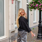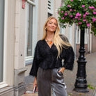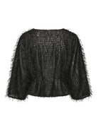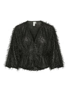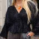 Mooie zwarte fluffy top van YAS. Het feestelijke topje heeft een v-hals en staat leuk met een glanzende glitterbroek.