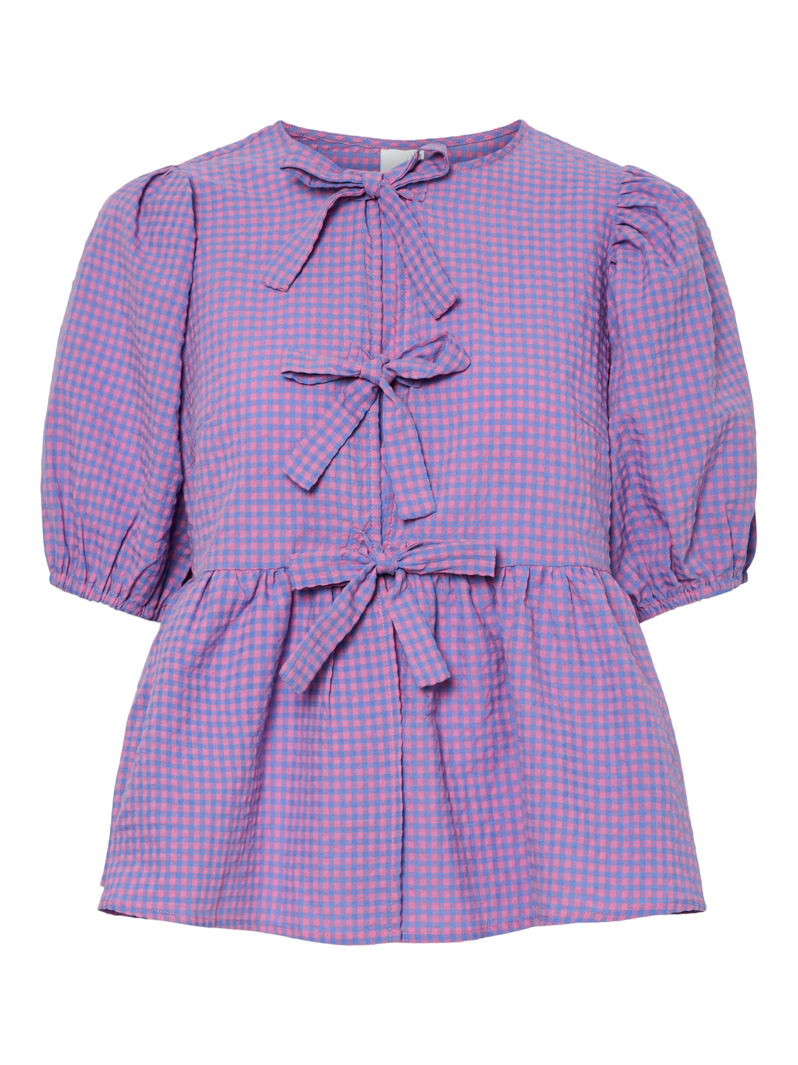 Mooie top van YAS. De blouse is te strikken aan de voorkant en heeft pofmouwen. Combineer met mooie jeans.