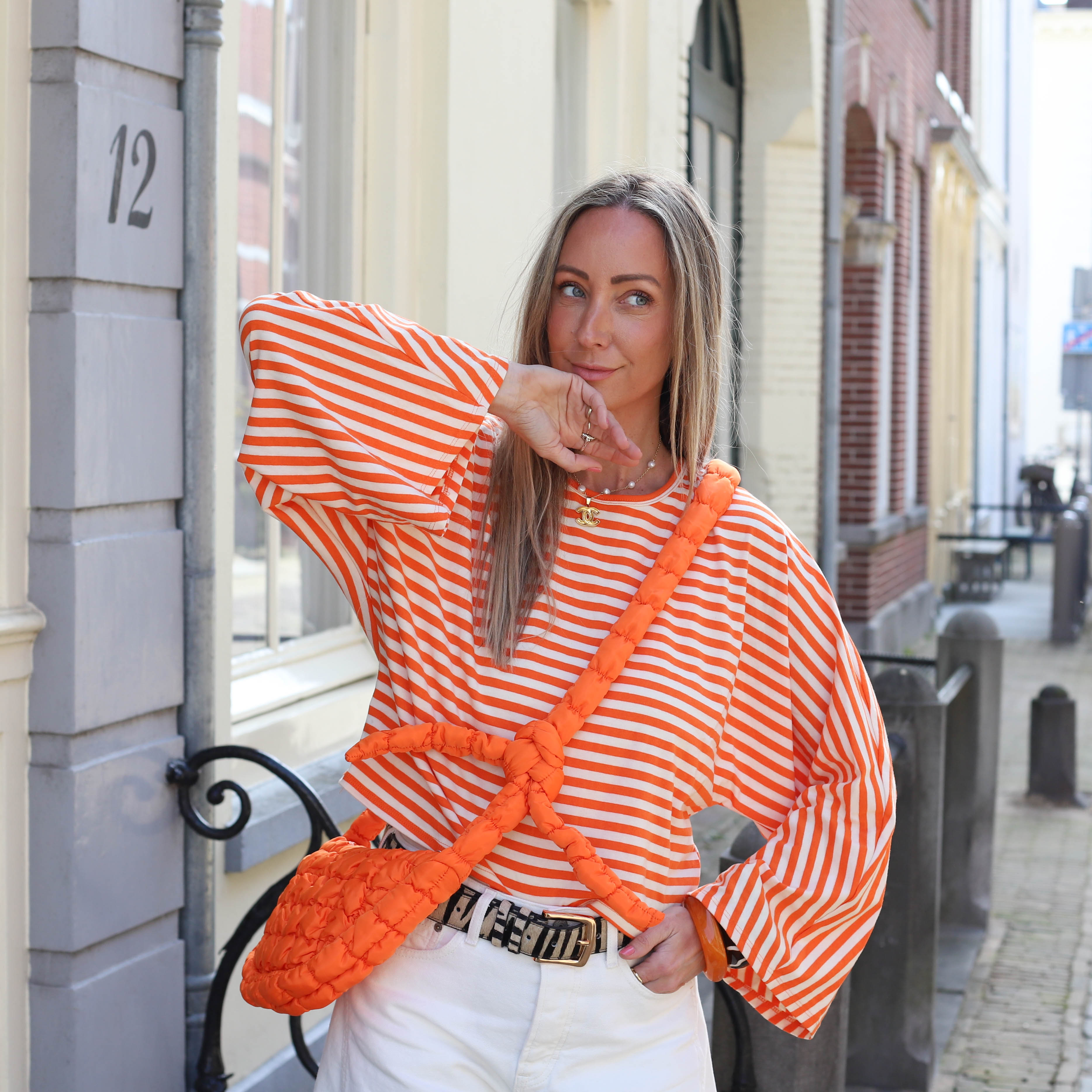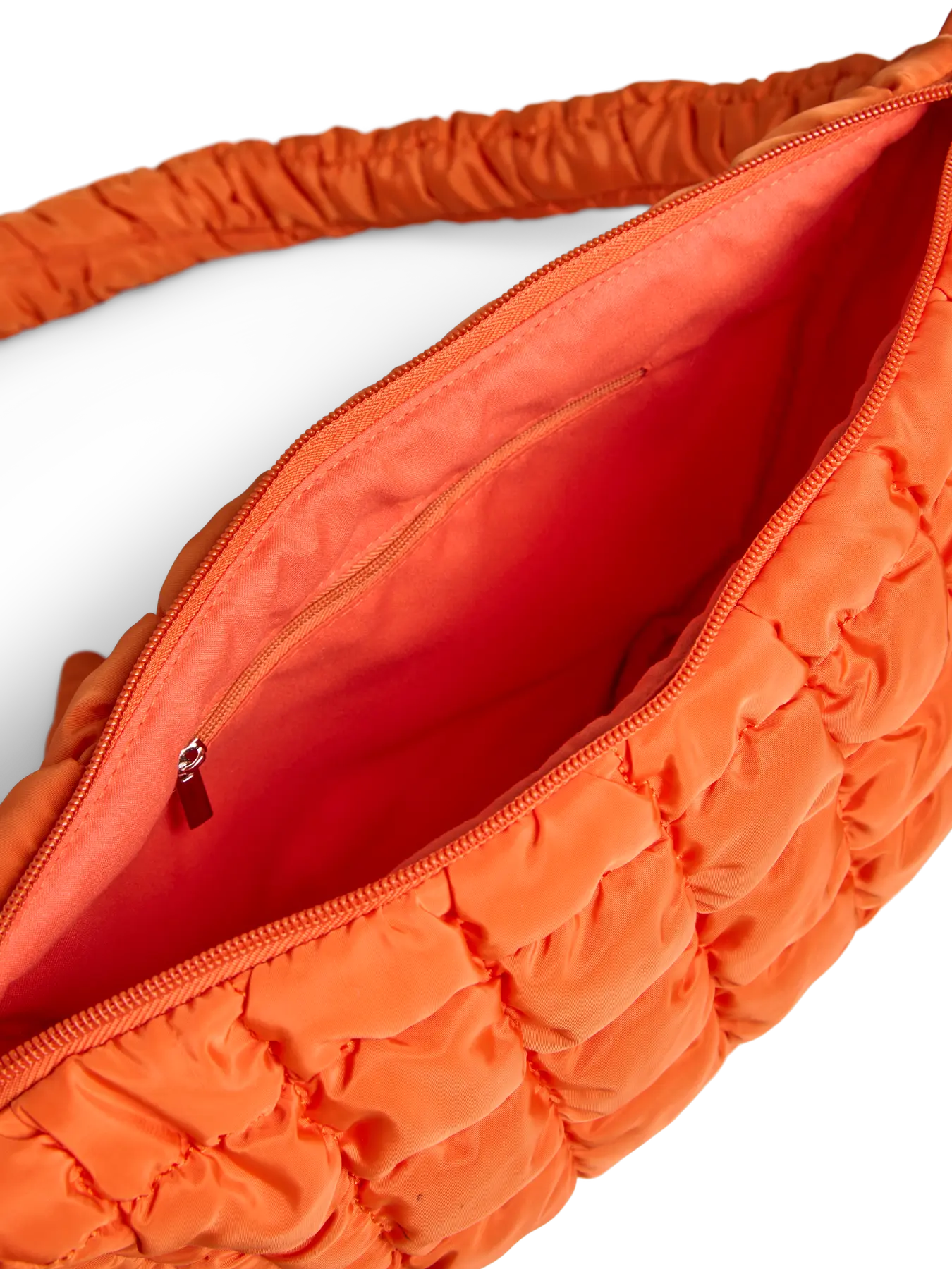 Opvallende en trendy tas in een frisse, oranje kleur. De Amanda knot bag heeft een speels design met een geknoopte band en een zachte, gewatteerde structuur. Perfect om je outfit een kleurrijke boost te geven, zowel casual als chic te dragen.