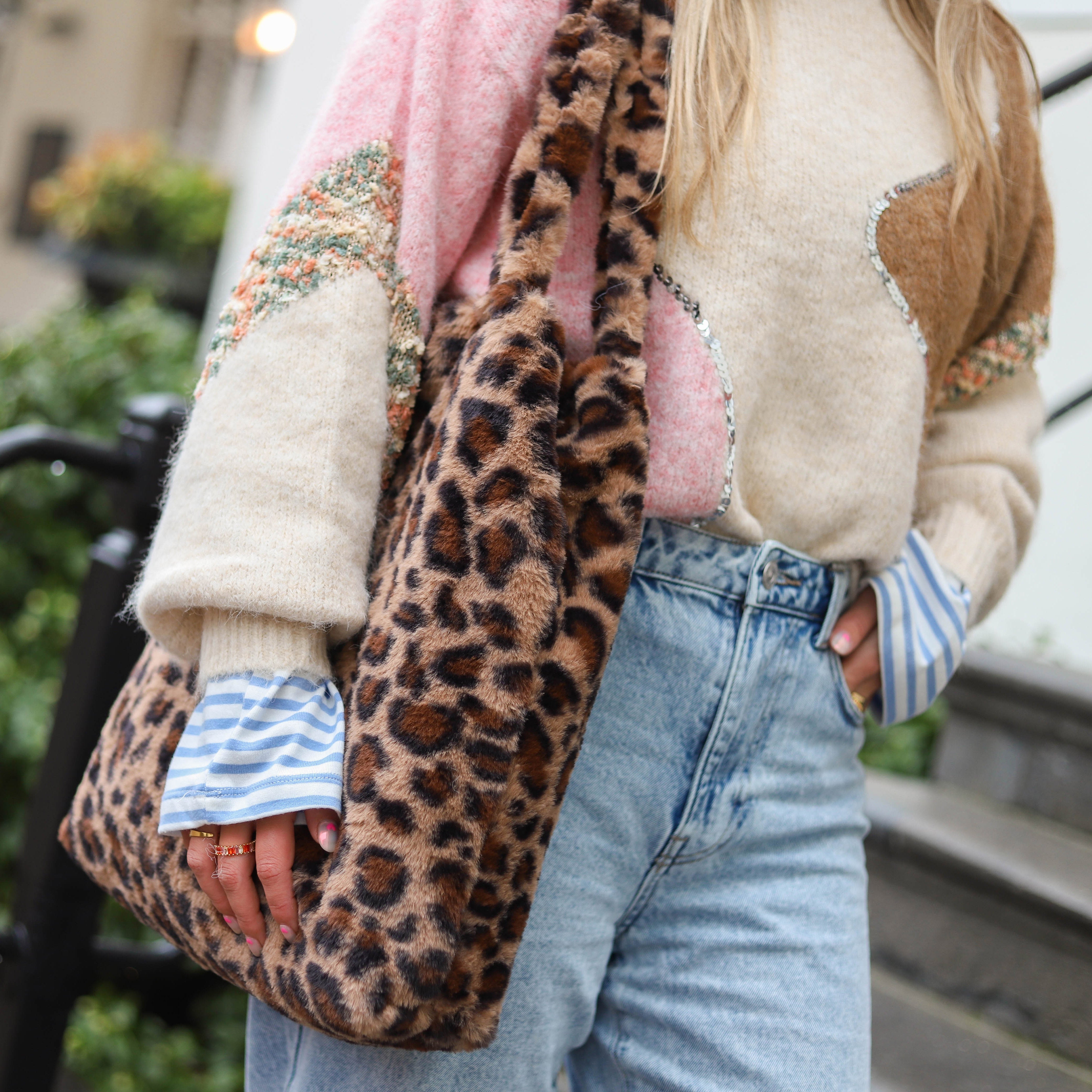 Mooie faux fur shopper in het bruin beige. Lekker zacht en met een leuke leopard print aan de binnenzijde. Hij is super groot, perfect voor al je spullen, voor je boodschappen, maar ook ideaal voor aan je buggy ;) (zeker ook te gebruiken als kussen zo zacht)