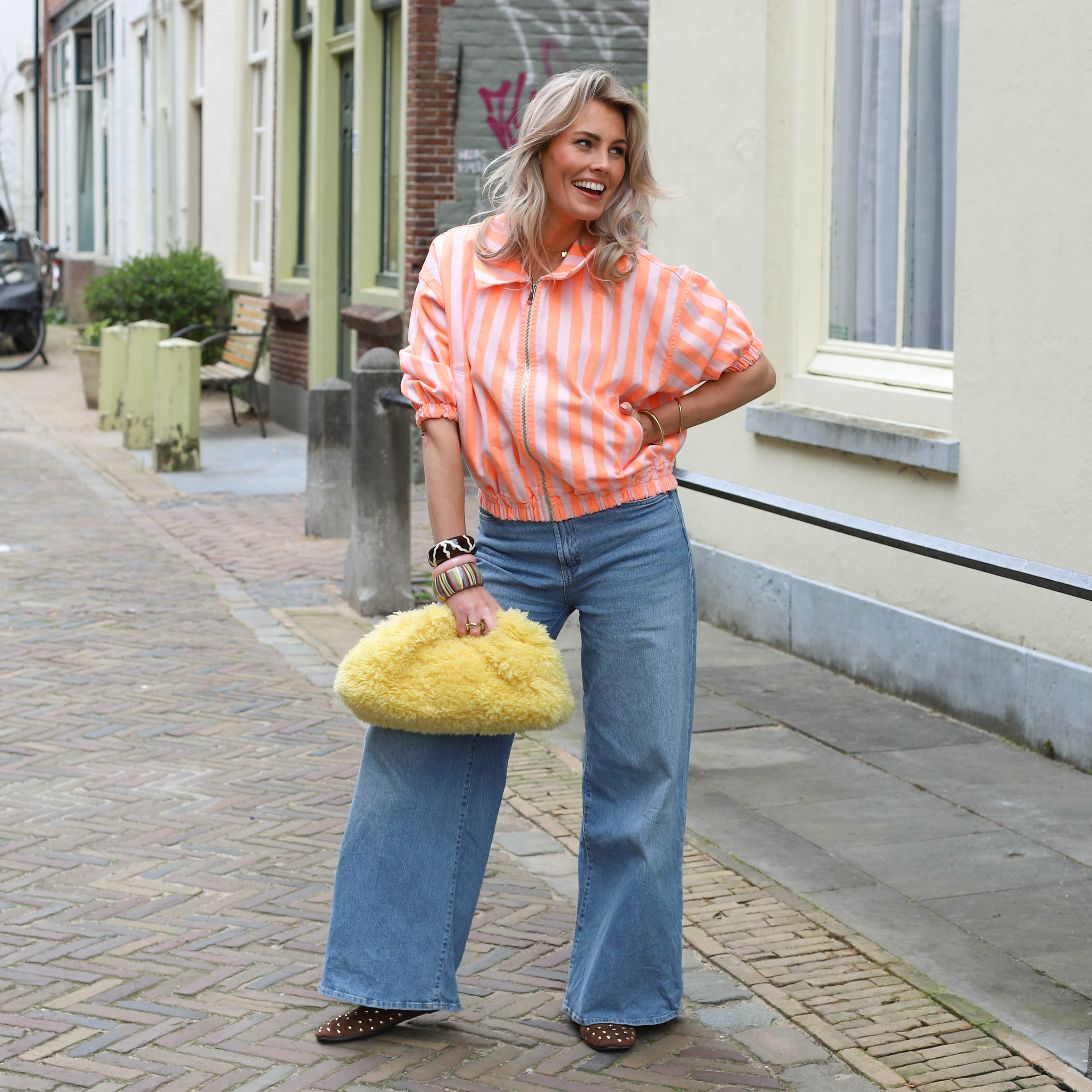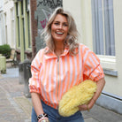 Fris en opvallend jasje met een speels streeppatroon in oranje en roze. De combinatie van kleuren en de sportieve fit geven dit item een trendy en zomerse uitstraling. Perfect om je outfit een kleurrijke boost te geven.