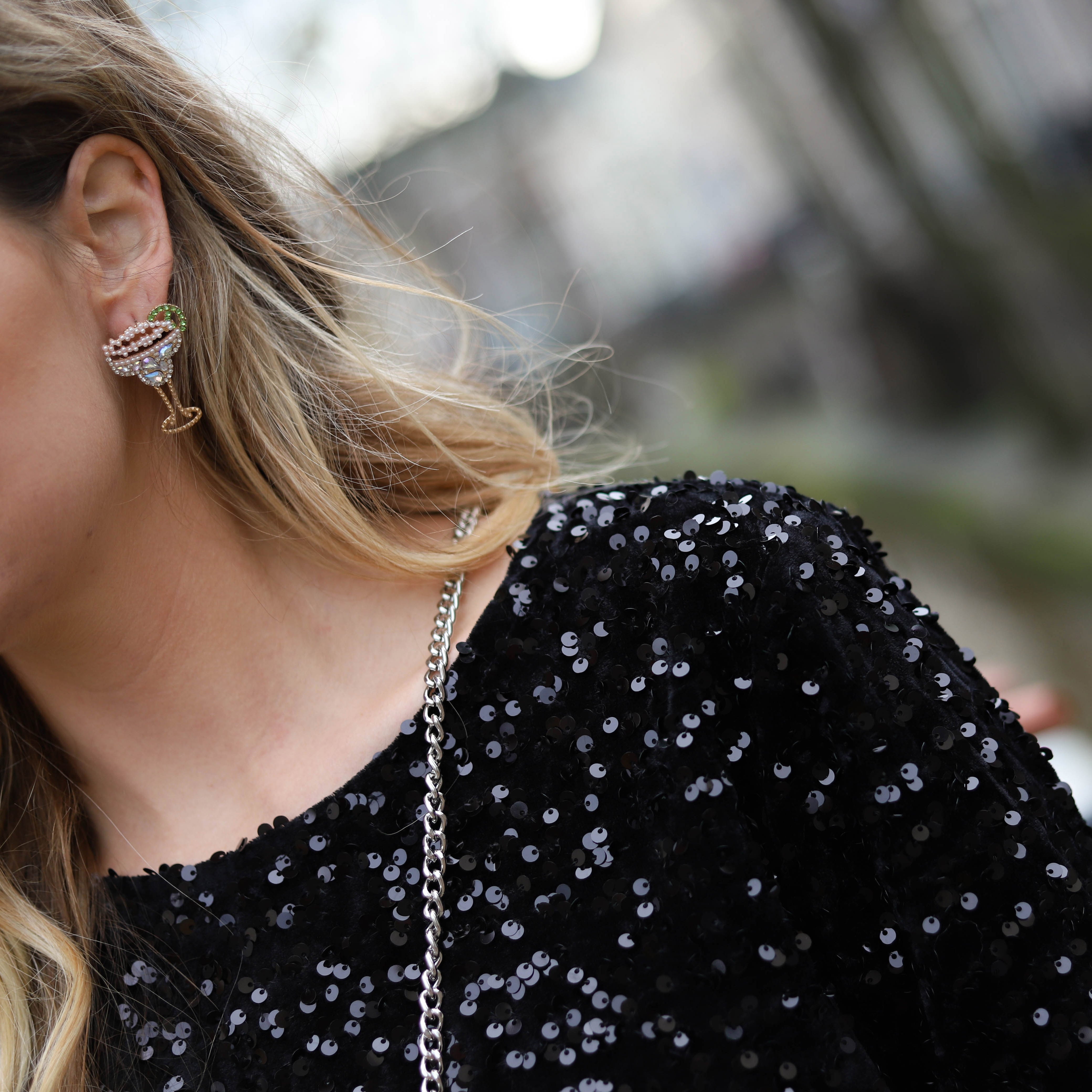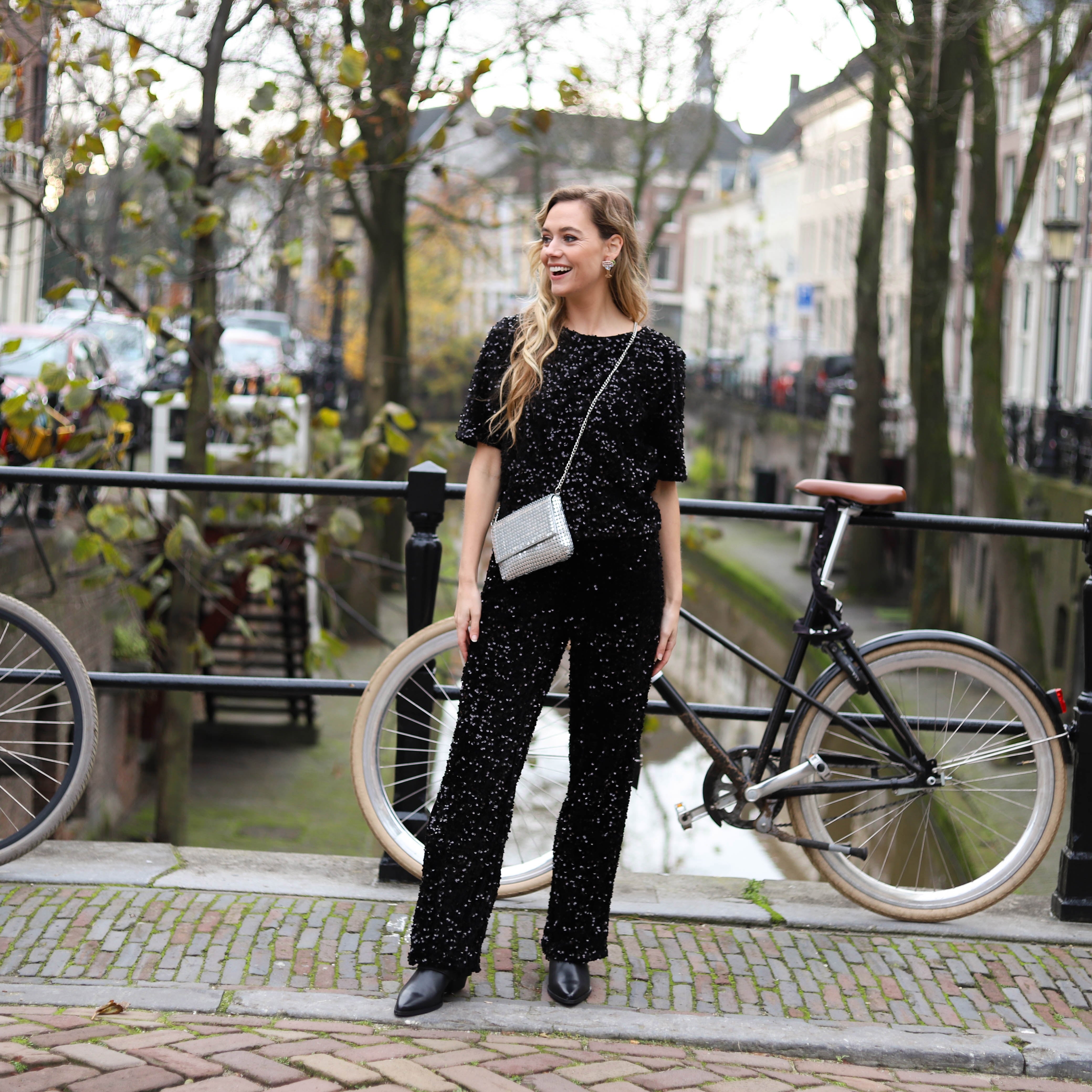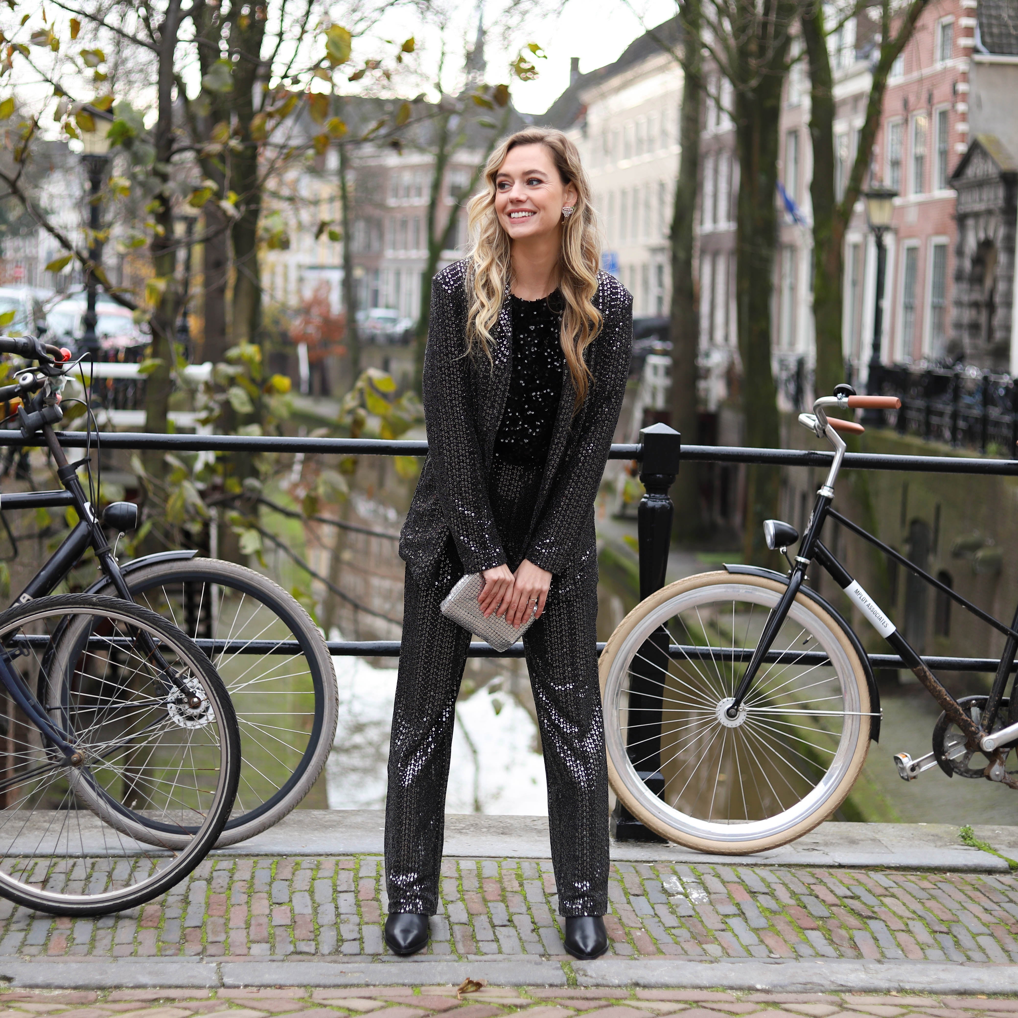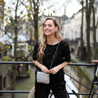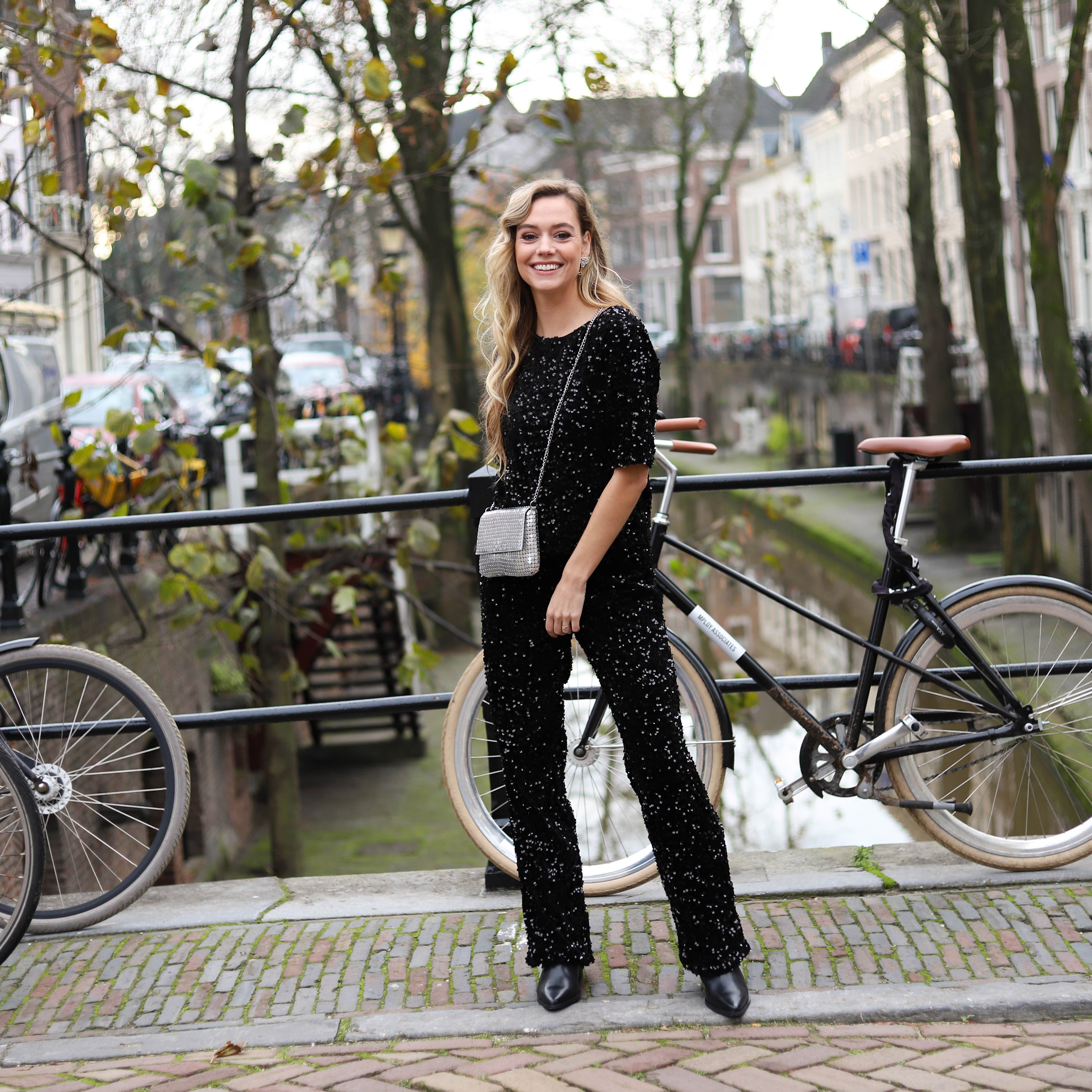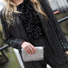 Mooie korte glittertop met pailletten in het blauw, roze en zwart: ideaal voor naar een feestje. Combineer hem met de bijpassende broek of een andere mooie broek.