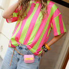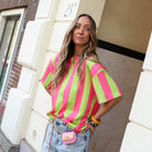 Maak een statement met dit T-shirt voorzien van een opvallend verticaal streeppatroon. Het shirt heeft een moderne, oversized pasvorm met verlaagde schoudernaden en een klassieke ronde hals. Combineer met een jeans.