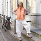 Maak je outfit compleet met deze té gekke bodywarmer in een frisse perzikkleur! Dit gilet is de ideale tussenlaag voor het voorjaar; lichtgewicht, comfortabel en super stijlvol. Het item is voorzien van een subtiel doorgestikt patroon, een praktische ritssluiting en een opstaande kraag die je beschermt tegen een fris briesje. De zachte kleur laat zich moeiteloos combineren met zowel drukke prints als rustige basics.