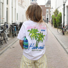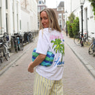 Haal de zomer in huis met dit té gekke witte T-shirt! De vrolijke 'Waikiki Beach Hawaii' print met palmbomen op de rug geeft je outfit direct een tropische en ontspannen vibe. Dankzij de oversized fit, de verlaagde schoudernaden en de zachte katoenstof is dit shirt de ultieme mix tussen comfort en stijl.