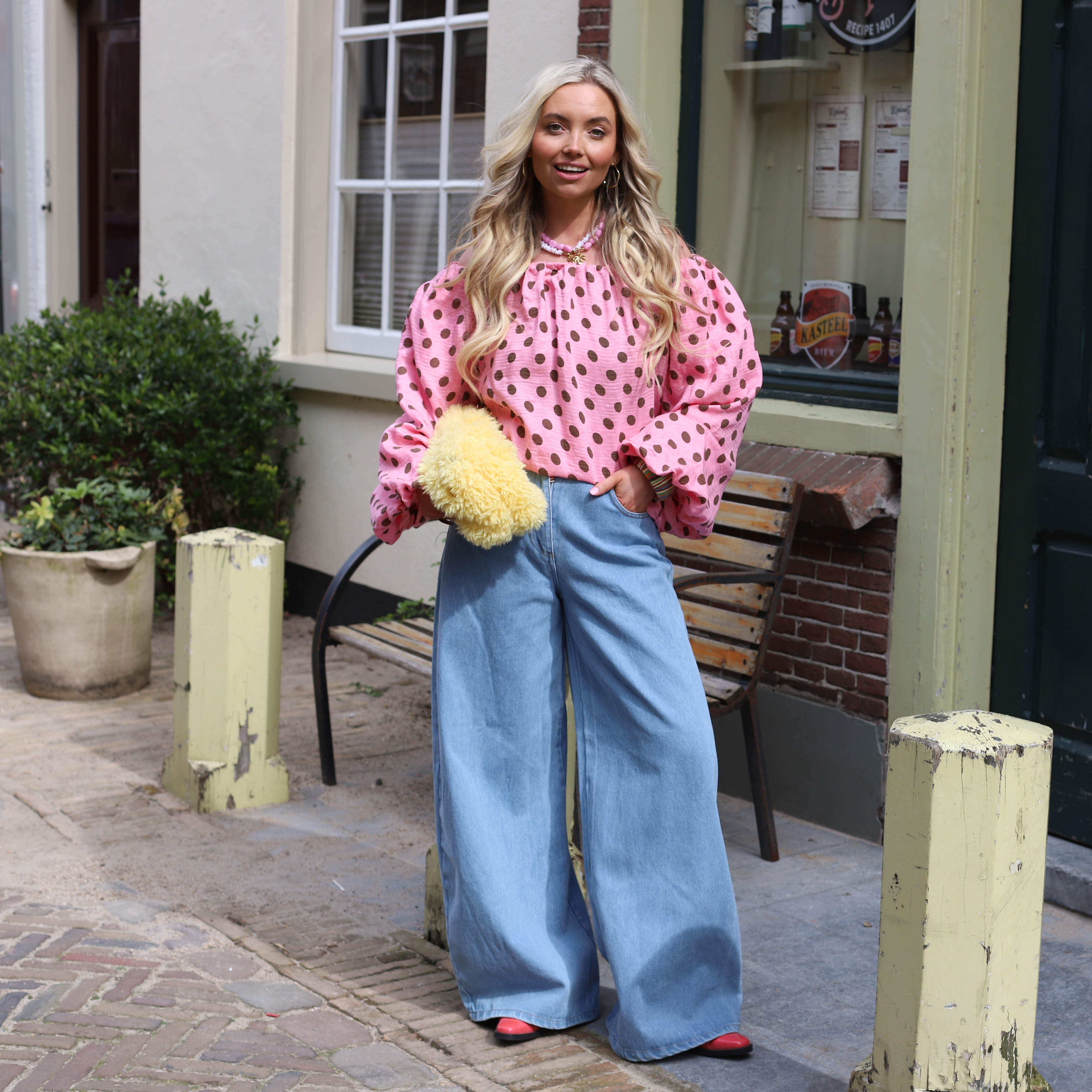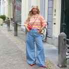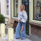 Combineer de jeans met een blouse of top en maak je look af met opvallende accessoires voor een effortless, stijlvolle outfit!