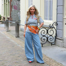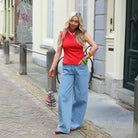 Maak een fashion statement met deze té fijne wide leg jeans in een tijdloze blauwe wassing! De broek valt direct op door de wijde pijpen, die zorgen voor een trendy en flatterend silhouet. De high waist fit accentueert je taille en geeft een mooie vrouwelijke vorm.