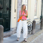 Combineer hem met een witte jeans en kleurrijke accessoires voor een complete, fashionable look!