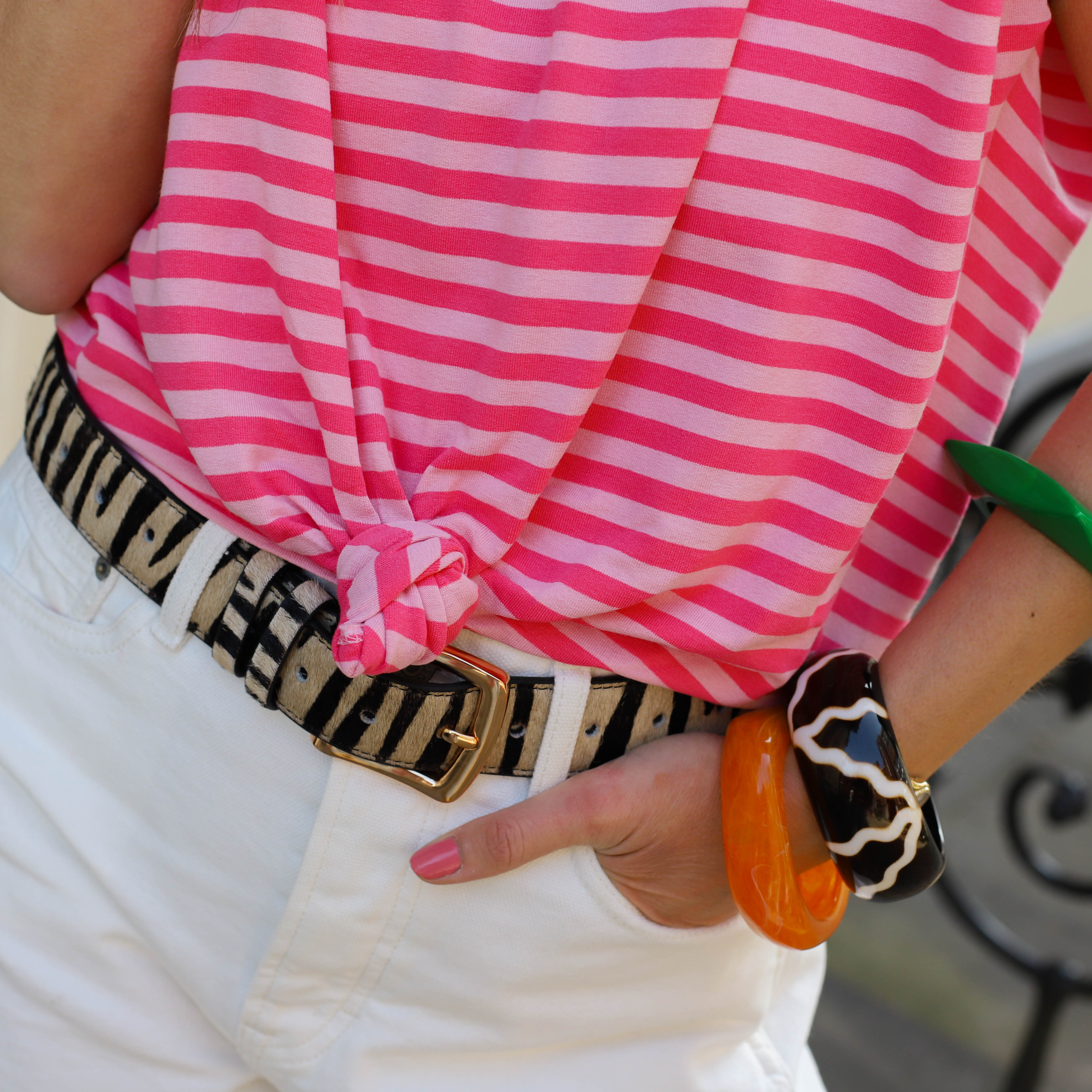 Streep top knoop dubbel roze